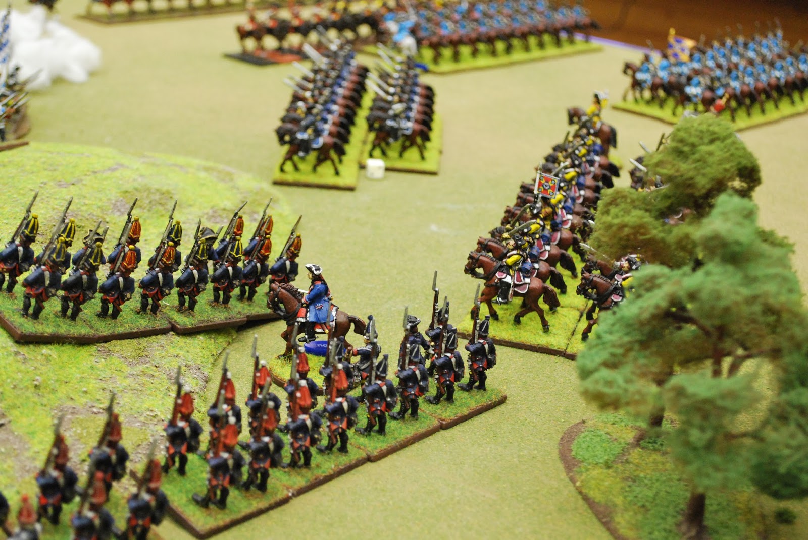 Французская бригада их левого фланга.Переправившись через реку,разворачивается в боевой порядок для атаки.Им противостоит Вторая Прусская бригада.